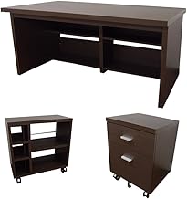 家具工場直販 デルナチュレ仕様の贅沢なワイドデスク3点セット (ブラウン/幅150) 日本製 パソコンデスク PCデスク 机 デスク + チェスト + ワゴン 家具ファクトリー (ブラウン【デルナチュレ仕様・木目】)