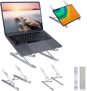 ノートパソコンスタンド PCスタンド コンピュータースタンド 6段の高さ/角度調整可能 姿勢改善 折りたたみ式ミ滑り止め アルミ合金製 ポータブル、持ち運びが簡単、MacBook Air、MacBook Pro、ノートパソコンスタンド、iPad、キンドル、タブレット用