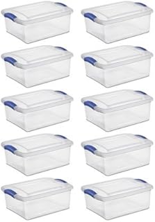 Sterilite 6クォート 透明&ブルー 積み重ね可能 ラッチストレージコンテナ クリア