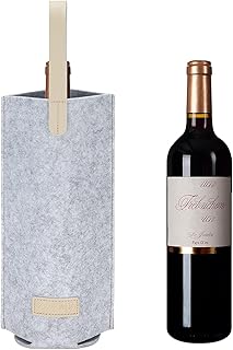 ボトルフェルトワイントートキャリア 本革ハンドル付き ポータブルワイントートバッグ シングルボトルワインプロテクター 結婚式 誕生日 パーティー BYOB レストラン ワインテイスティング用 ワイン愛好家へのギフトに最適