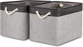 Bidtakay ファブリックストレージバスケット ハンドル付き [2枚パック] 大きなキャンバスオーガナイザー 16インチ x 11.8インチ x 11.8インチ 折りたたみ式トールバスケット 長方形ギフトバスケット 装飾ストレージビン クローゼット、自宅用 (ブラック&グレー)