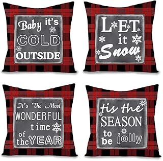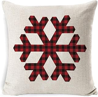 Ussap 4パック バッファロー格子柄 雪の結晶 クリスマス 冬 ホリデーデコレーション メリークリスマス ファームハウス 装飾用クッションカバー ソファ カウチ ホームデコレーション コットンリネン 18×18インチ