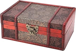 HERCHR ヴィンテージジュエリーボックス 木製宝箱 記念品ボックス 装飾木製収納ボックス ギフトボックス ホームデコレーション 9.1 x 6.3 x 3.9インチ (蓮)