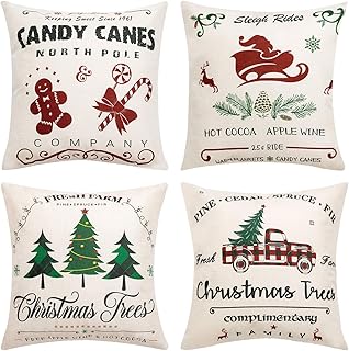 KOMEX クリスマス枕カバー 4パック 18x18インチ 正方形カバーケース クッション 冬 ホリデー ファスナー付き 装飾 スロー 枕カバー 屋内 屋外 ホームデコレーション ソファ ベッド 椅子 カウチ カーセット