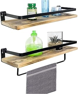 Soraken フローティングシェルフ 壁棚 壁マウント バスルームシェルフ 素朴な木製壁ストレージシェルフ キッチン バスルーム リビングルーム 寝室用 2個セット 取り外し可能なタオルホルダー付き ヴィンテージブラック