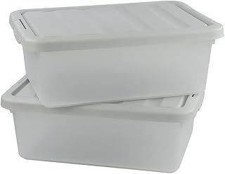 Inhouse 透明プラスチックストレージボックス グレーの蓋付き 2個パック