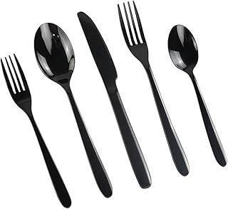 Vababa 60ピース ブラックカトラリー 銀食器、ステンレススチール食器、12人分