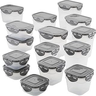 Rachael Ray 漏れ防止 スタッキングコンテナ 食品保存容器セット 30個 透明 グレーの蓋付き