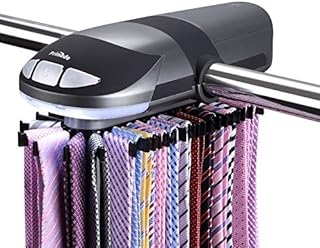 Primode 電動タイラックLEDライト付き - クローゼットオーガナイザー、 ベルトやネクタイを64本までディスプレイ収納、ロテーションは電池駆動。プレゼントに最適です。 COMINHKG105141