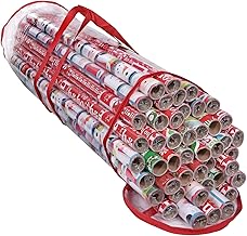 ProPik ギフトラップオーガナイザー ラッピングペーパーストレージバッグ 40インチのホリデーペーパーにフィット 最大24ロールまで収納可能 高耐久クリアPVCバッグ ハンドル付き レッド&クリア)