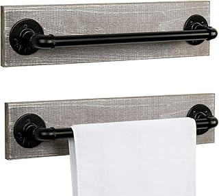 MyGift 24インチ ビンテージ アンティーク調 ブラウン 白と黒 金属 工業パイプ 壁取り付け バスルームタオルバーラック 2個セット