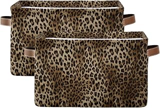 Evlife 収納バスケット キューブ ビンテージ 動物 チーター ヒョウ柄 大型 折りたたみ可能 おもちゃ 収納ボックス ランドリーオーガナイザー クローゼット 棚 保育園 キッズ 寝室用 15x11x9.5インチ 2パック