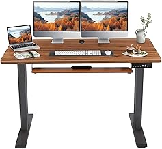 Kingdely 昇降デスク 電動 昇降式テーブル 120cm 60cm 高さ調節71cm~121cm 2つモーター キーボードスライダー付き 障害物検知機能 4段メモリー機能 アジャスター付き スタンディングデスク おしゃれ 脚+天板 (ウォールナット)