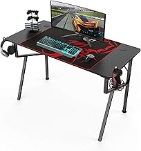 DESIGNA ゲーミングデスク 47インチ K型 コンピューターデスク オフィスデスクゲーマースタイル マウスパッド付き カップホルダー ヘッドホンフック コントローラースタンド 組み立て簡単 カーボンファイバーデスクトップ ブラック